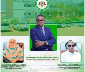 Waxaa maanta si rasmi ah xilka ula wareegay Wasiirka cusub ee Wasaaradda Caafimaadka Dowladda Puntland, Mudane Maxamed Cabdirahmaan Maxamed Faroole, Marwo Maryan Cismaan Axmed (Fangase) oo ah Wasiir Ku-xigeenka Wasaaradda, iyo Mudane Cali Maxamed Cismaan oo ah Wasiiru-dowlaha Wasaaradda